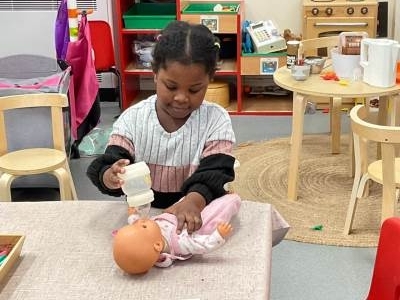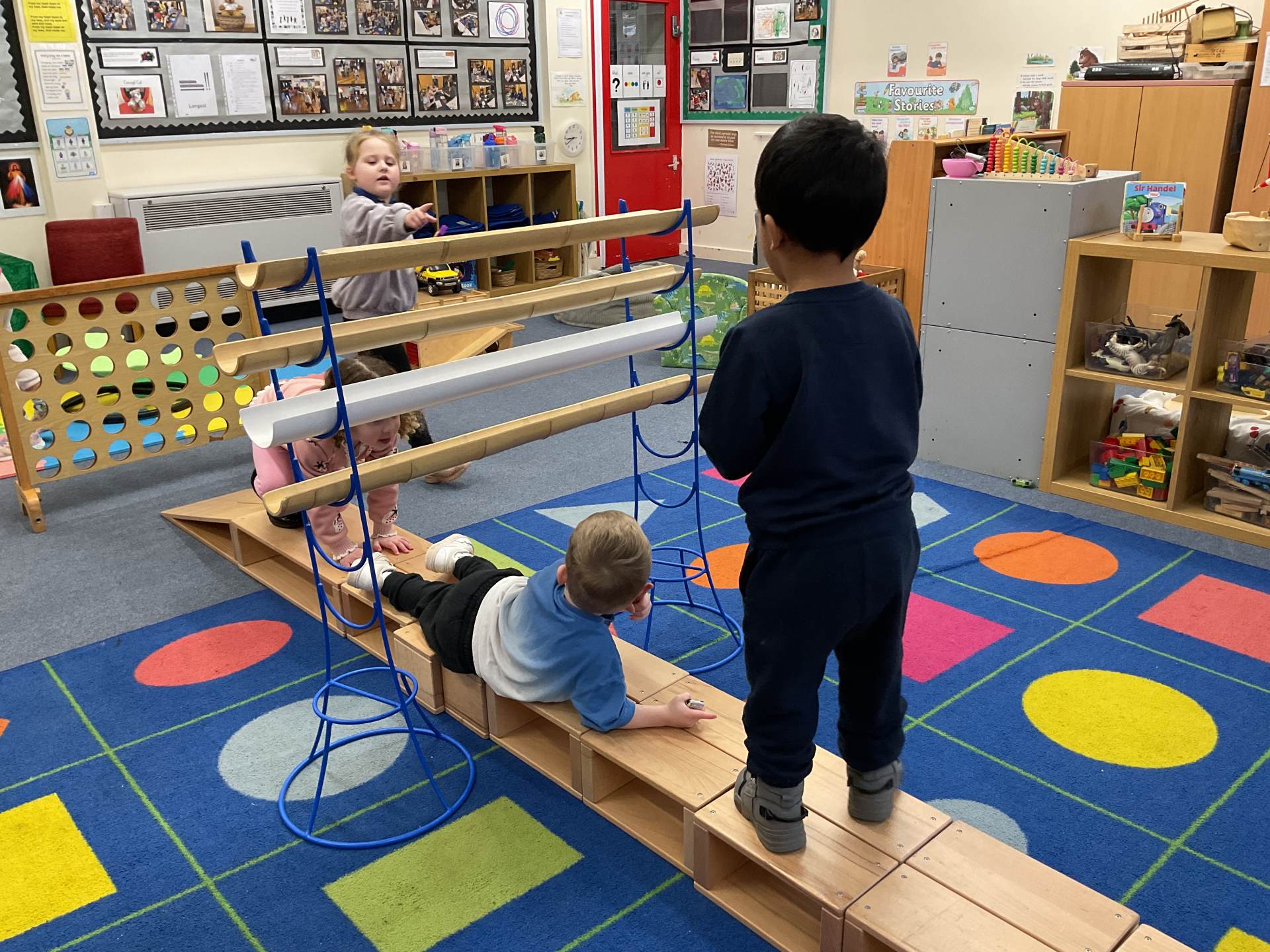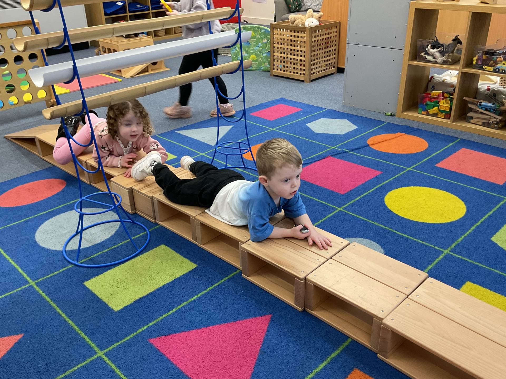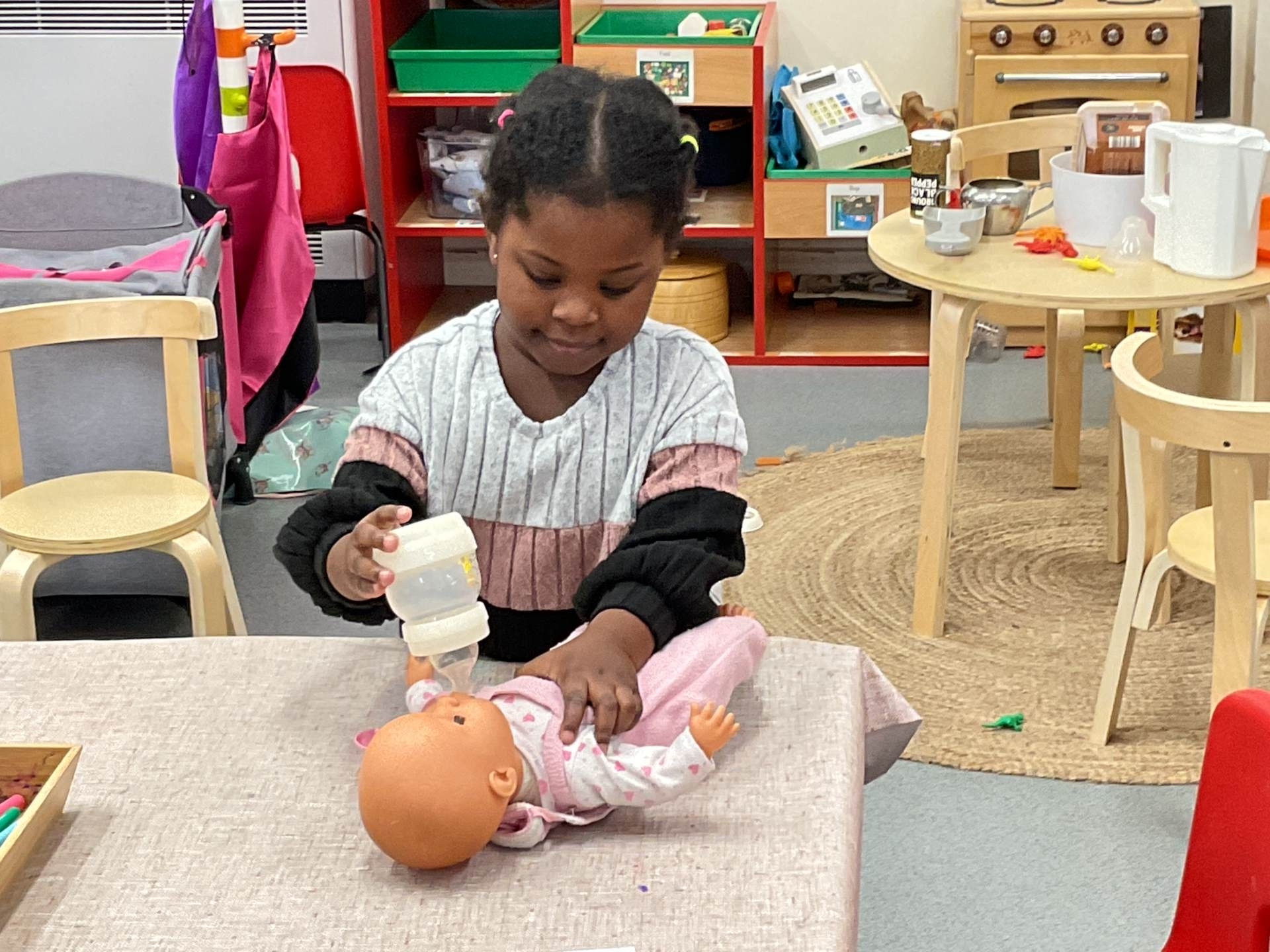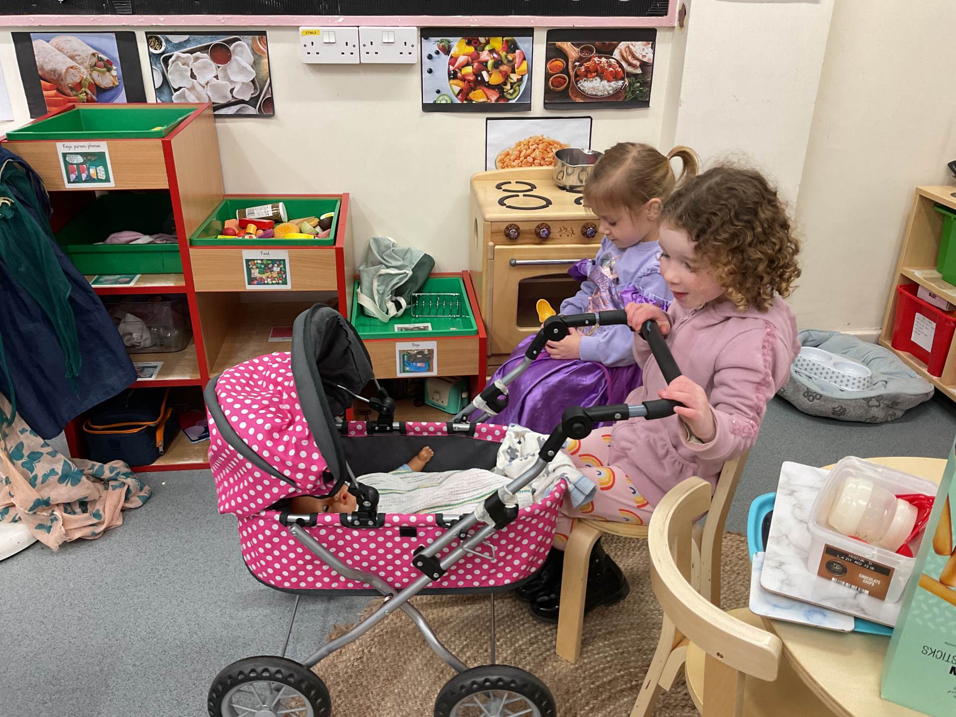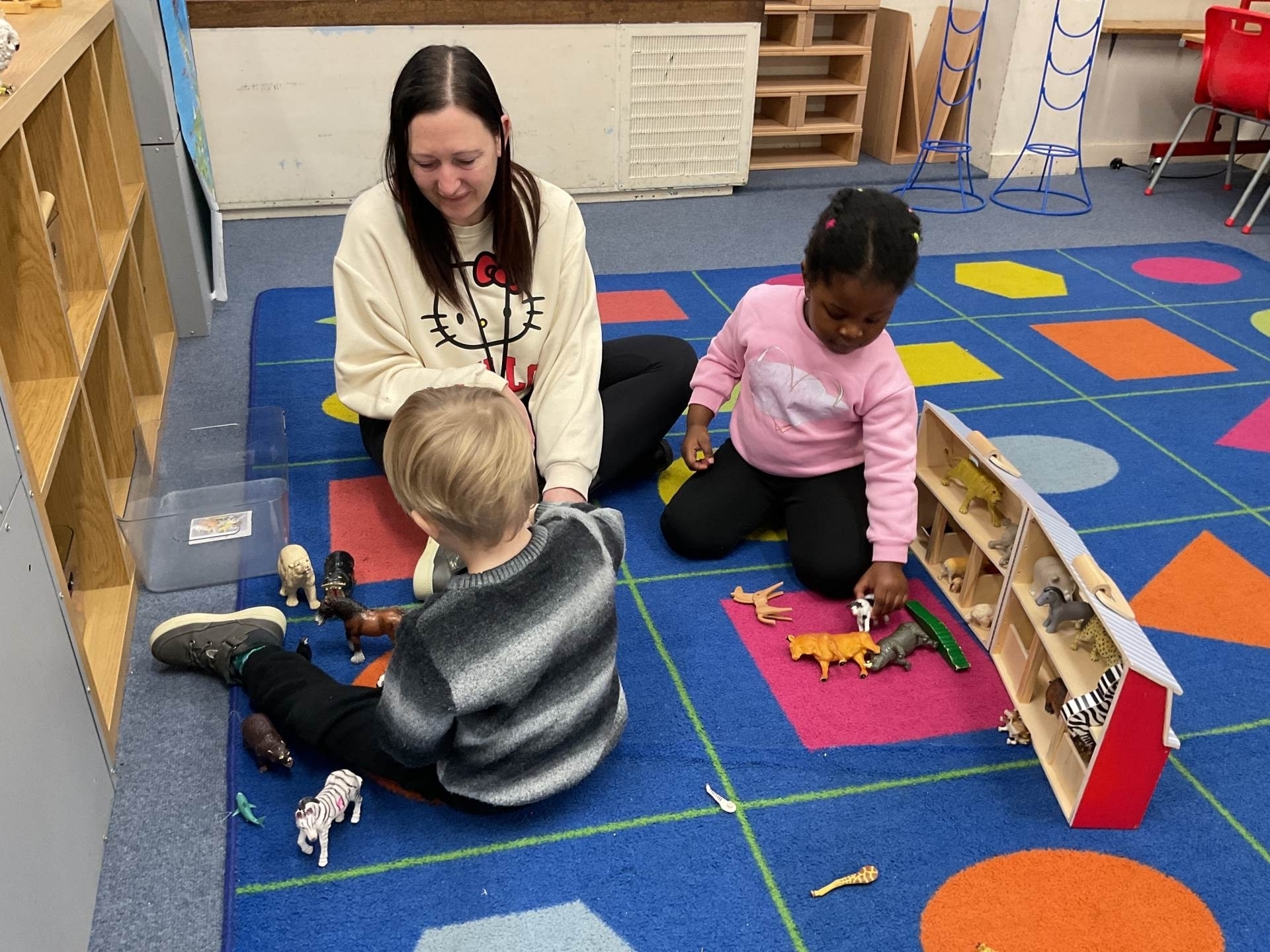 The pre-school children have amazing imaginations! They made rockets, boats etc. using the wooden blocks. The children pretended to be vets, hairdressers, palaeontologists, police, fire officers, military personnel, superheroes and farmers.