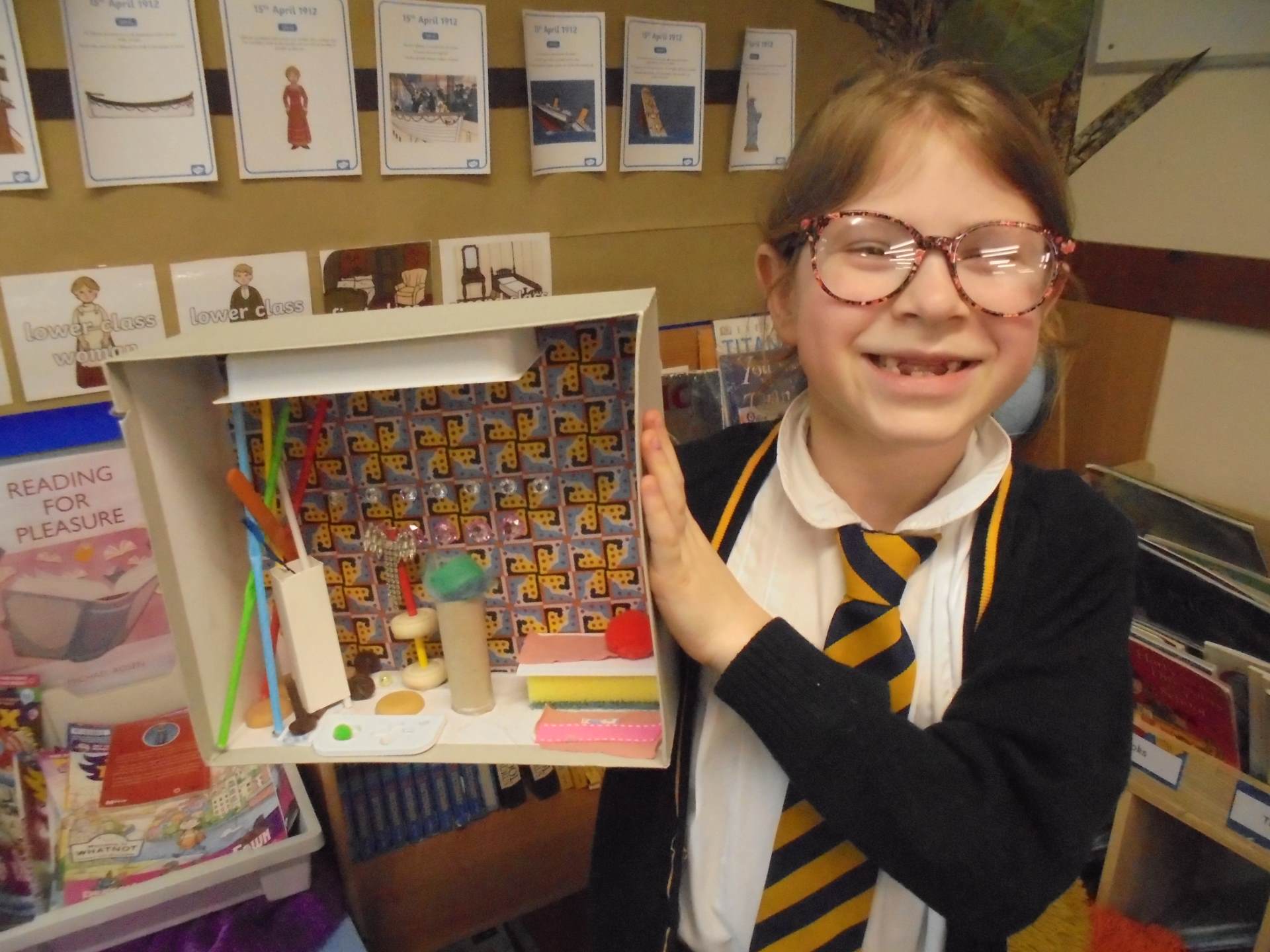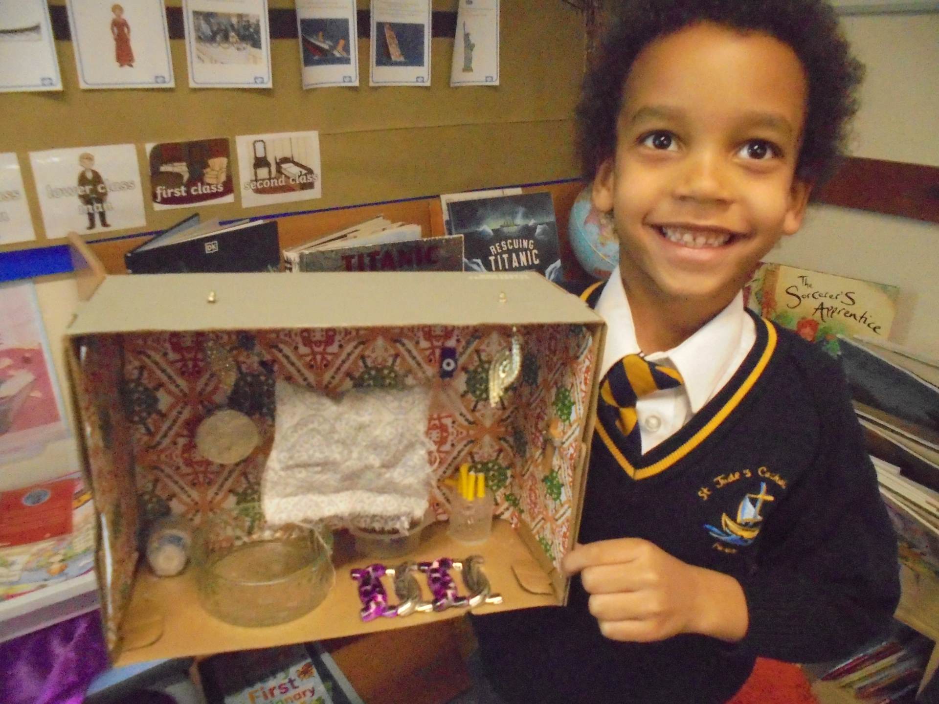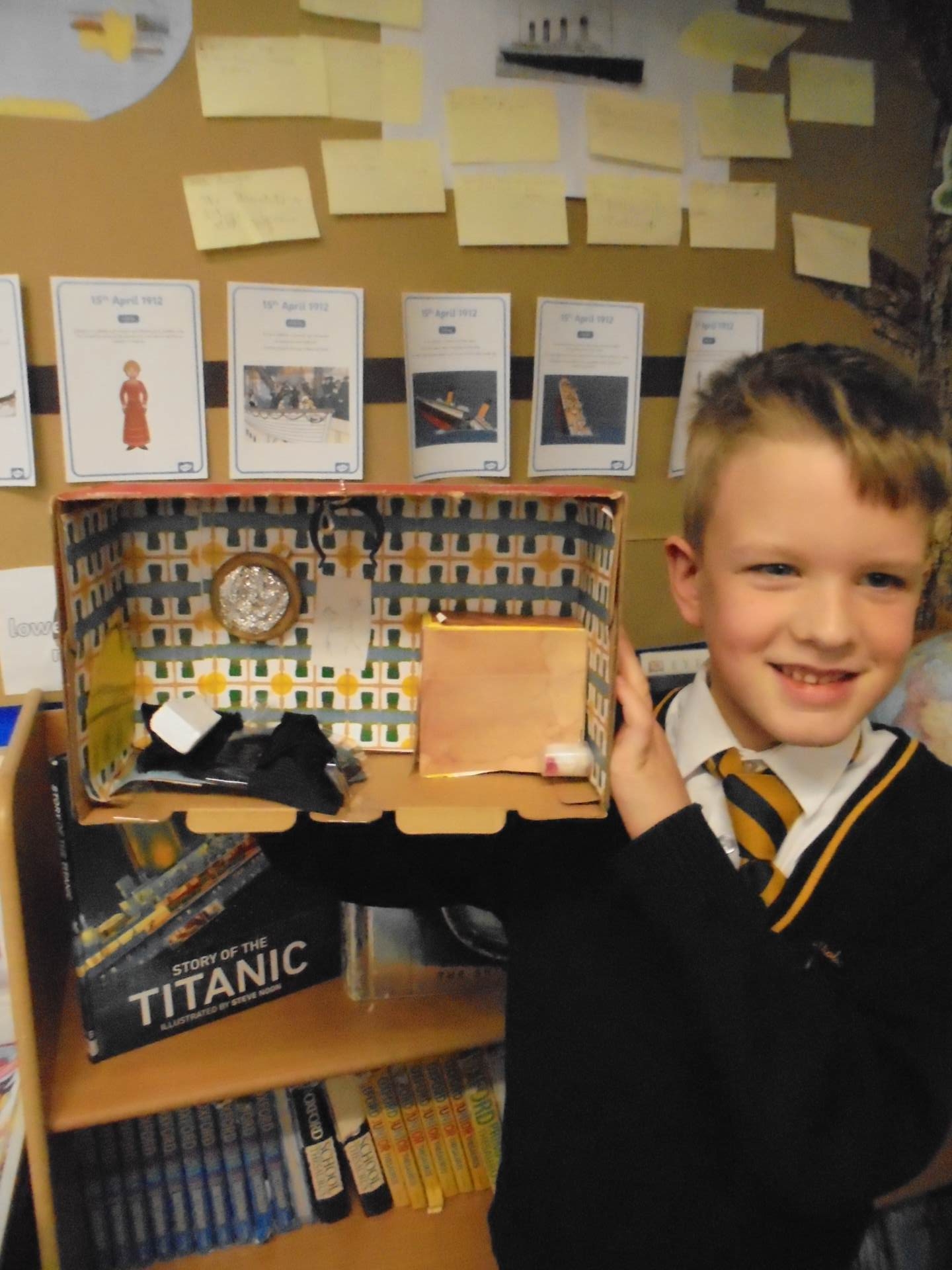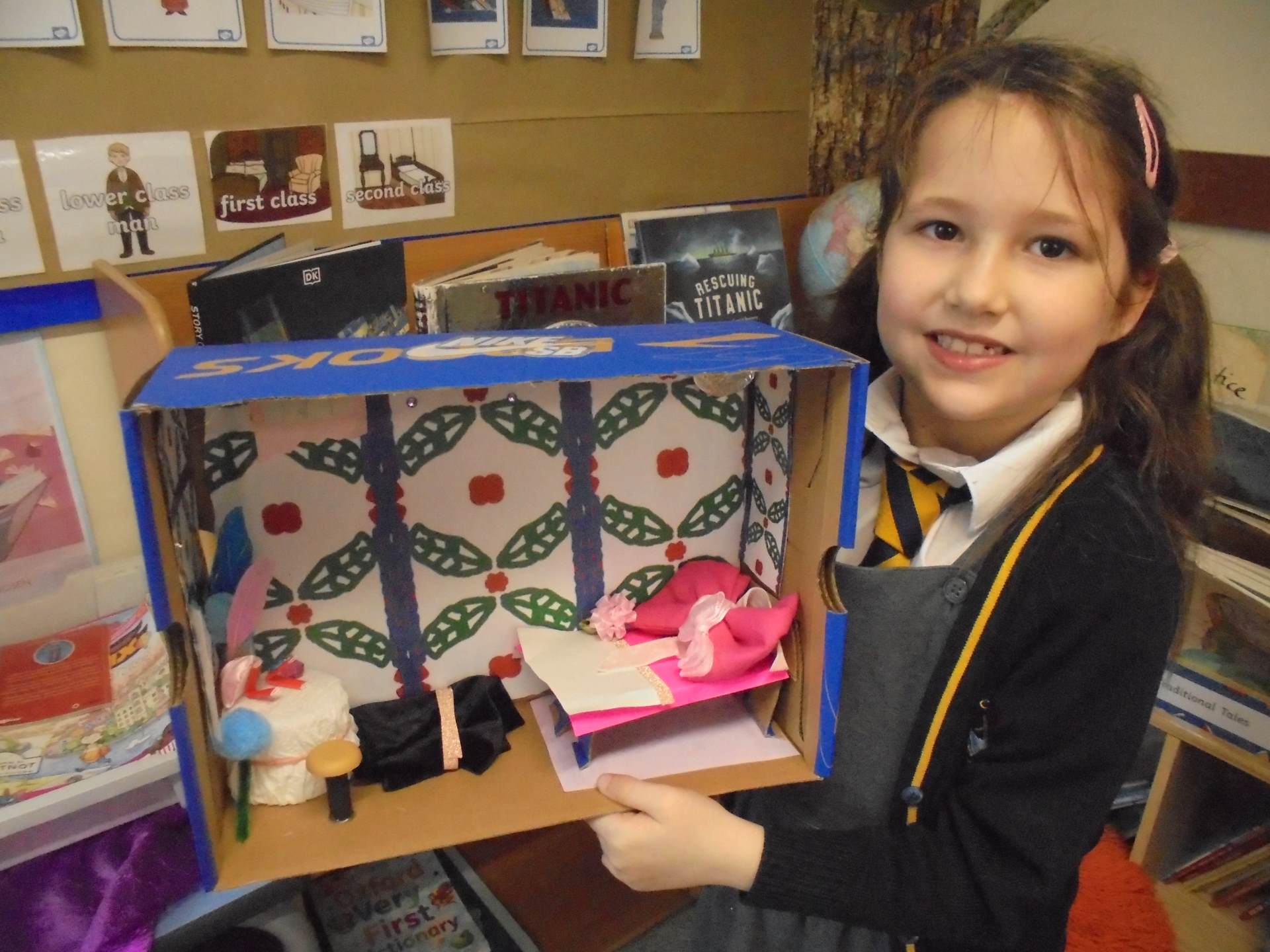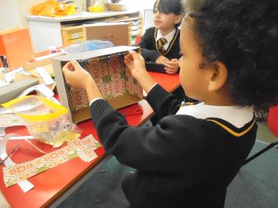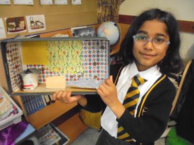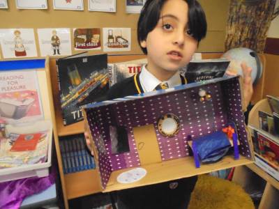 Year 2 learnt about the artist William Morris. The children explored the different pieces of art work he created and used his style to design wallpaper for their Titanic cabin. The children tried to include nature within their wall paper as well as symmetry and a repeating pattern.