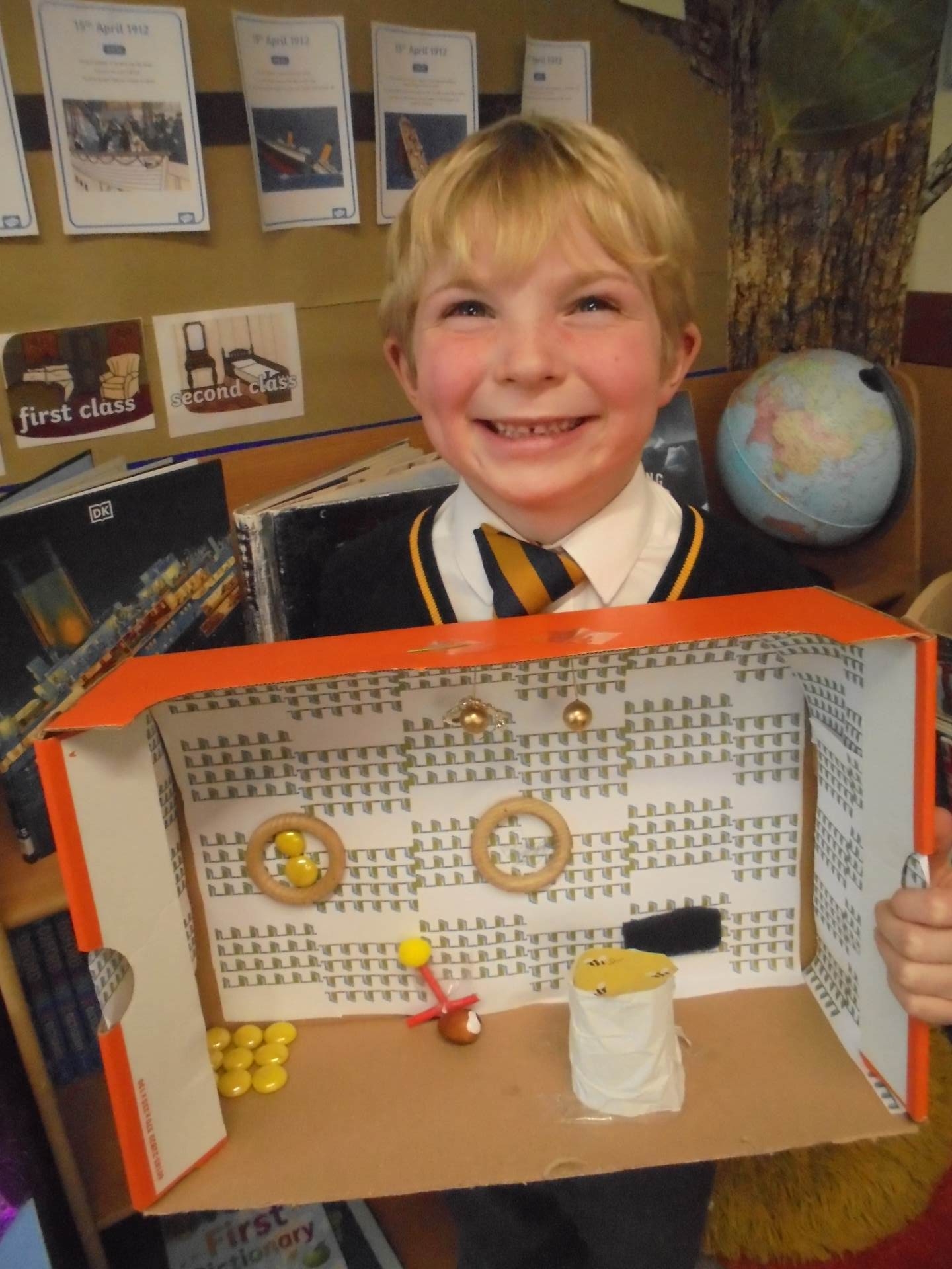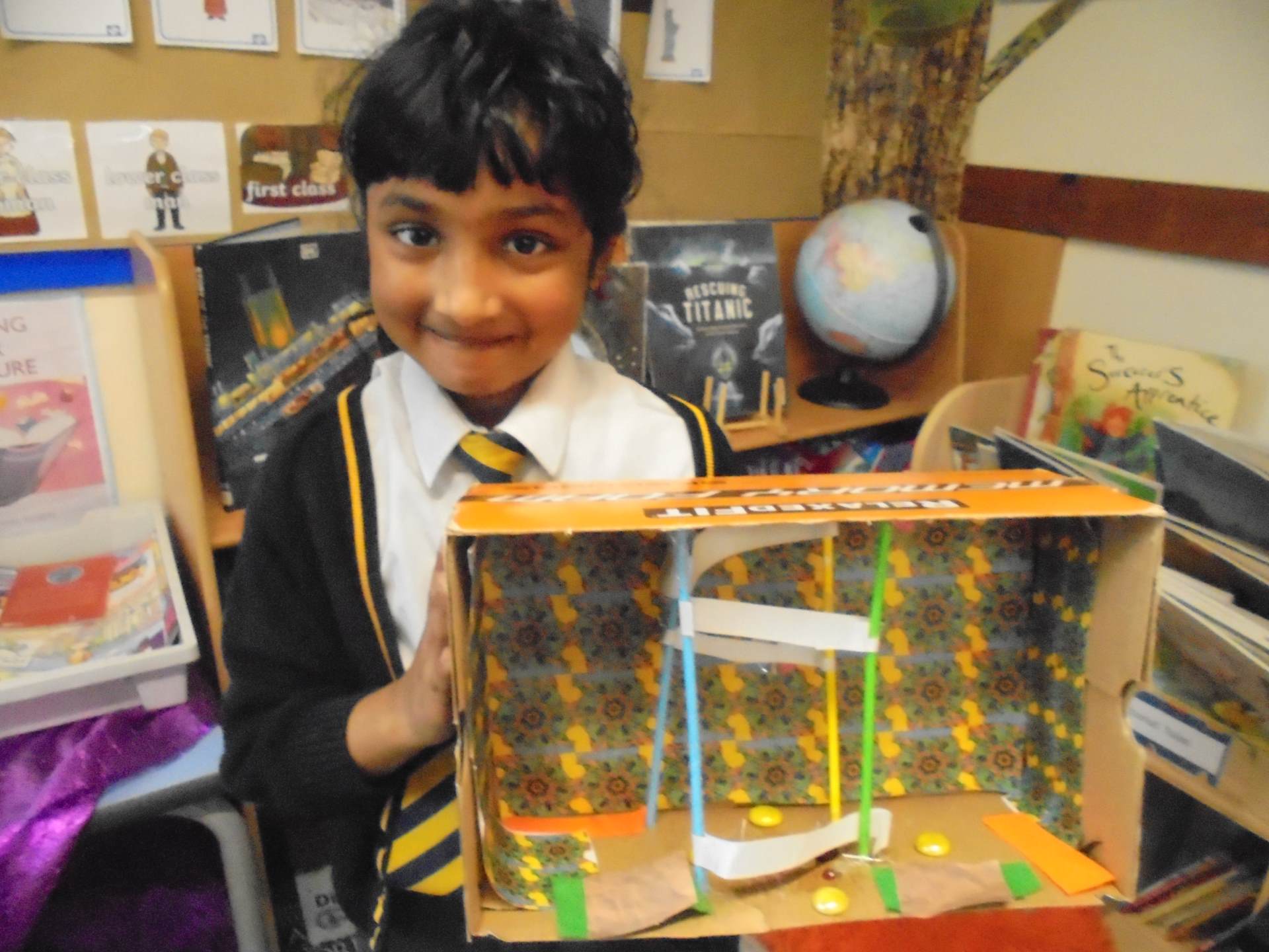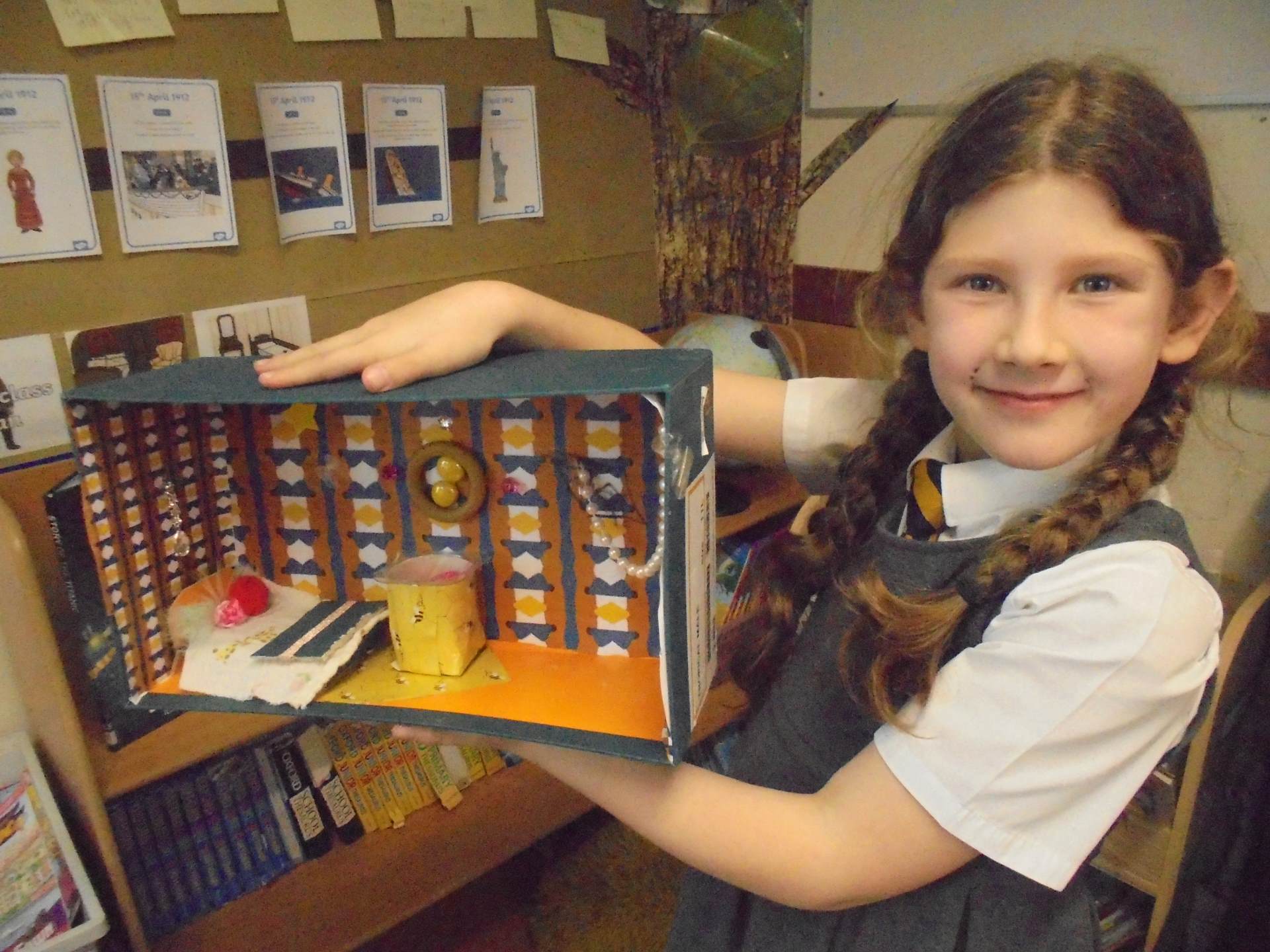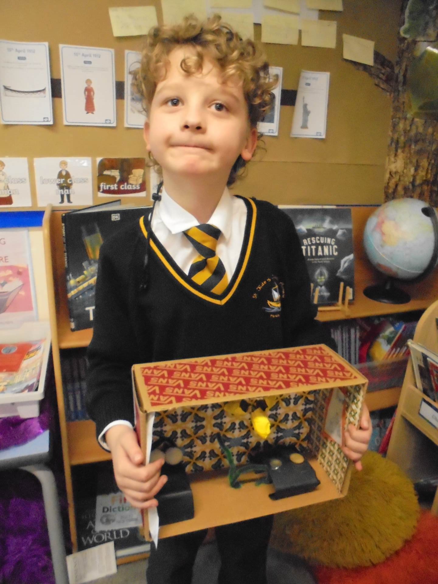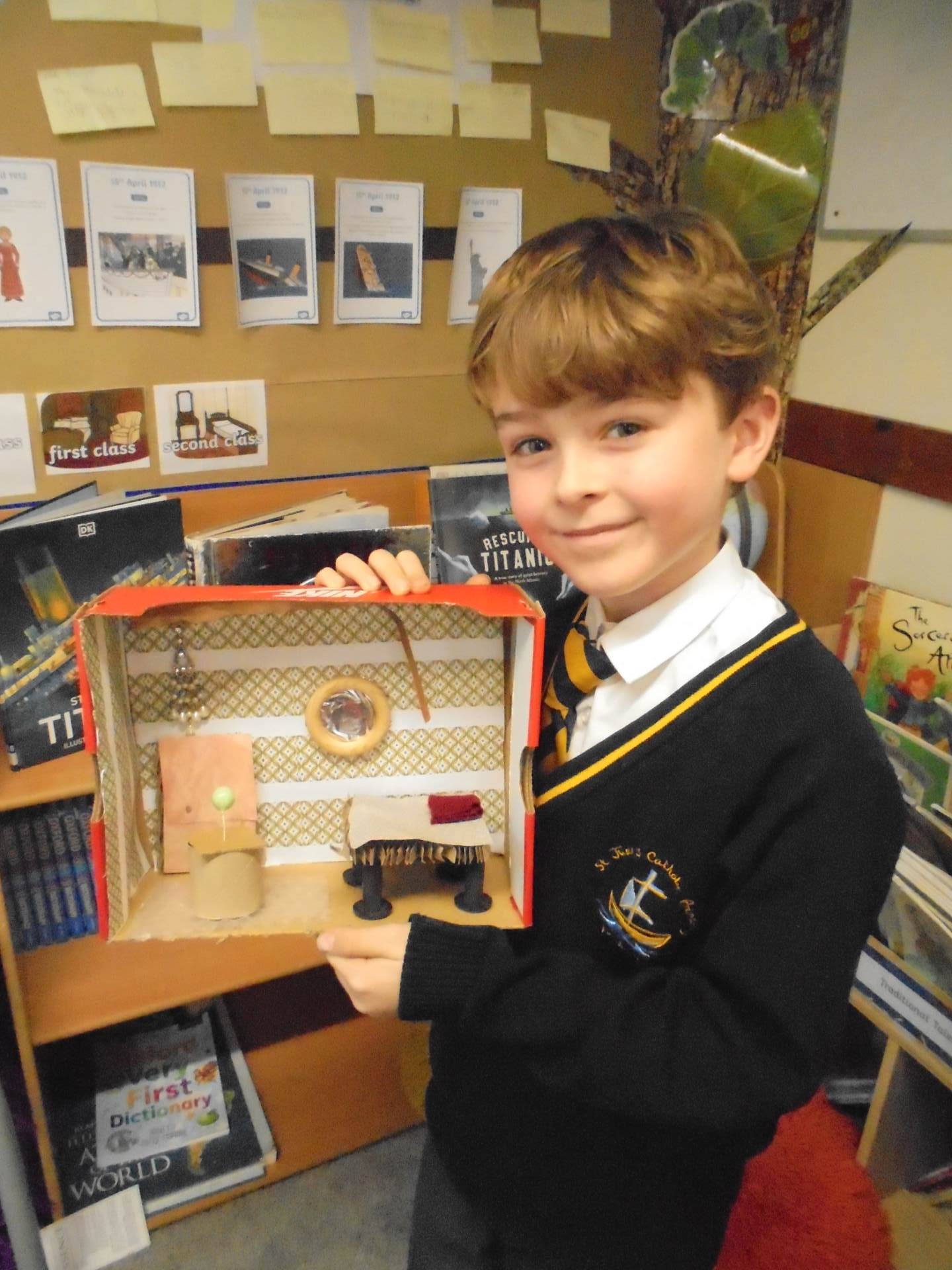Year 2 learnt about the artist William Morris. The children explored the different pieces of art work he created and used his style to design wallpaper for their Titanic cabin. The children tried to include nature within their wall paper as well as symmetry and a repeating pattern.