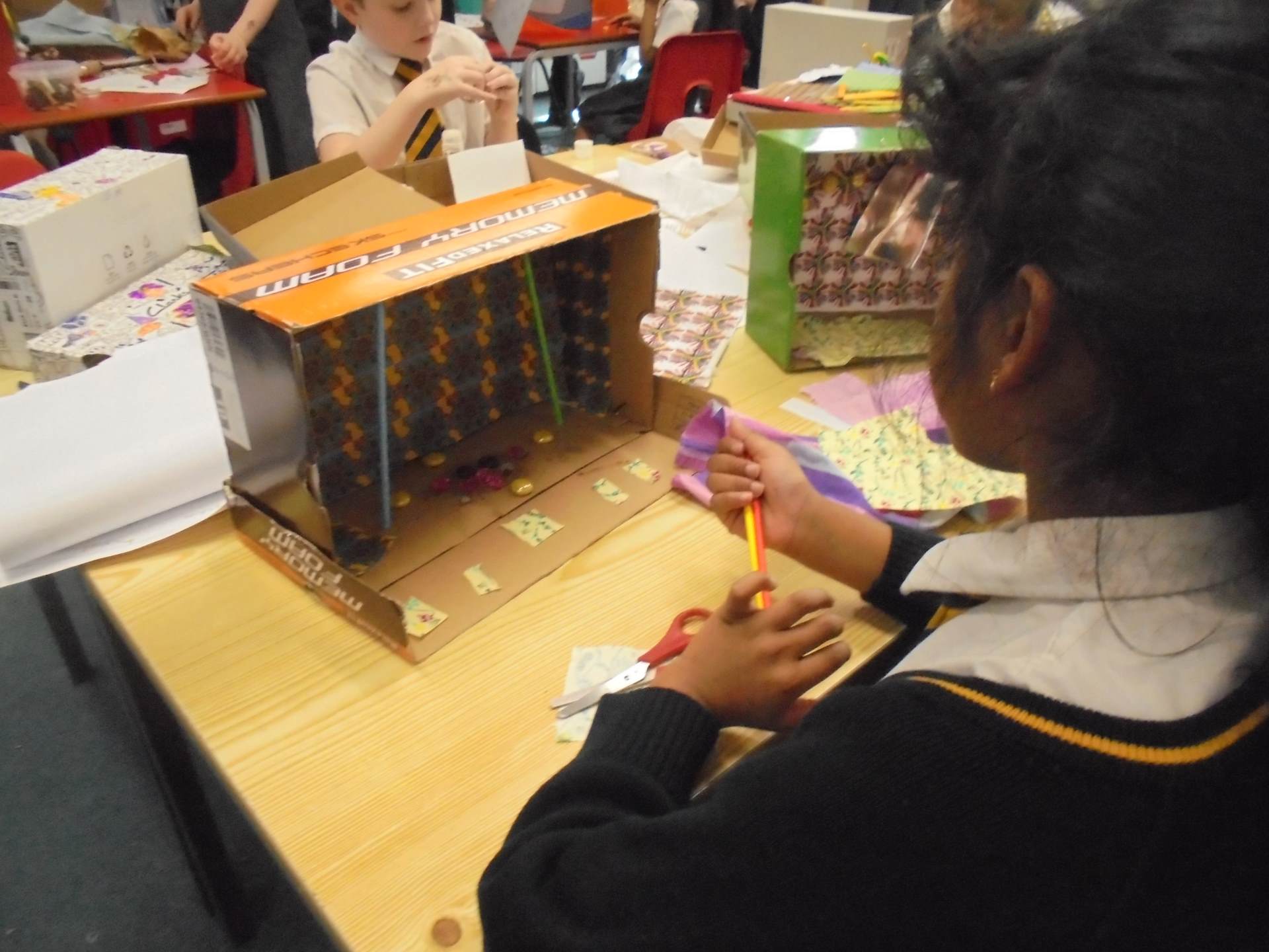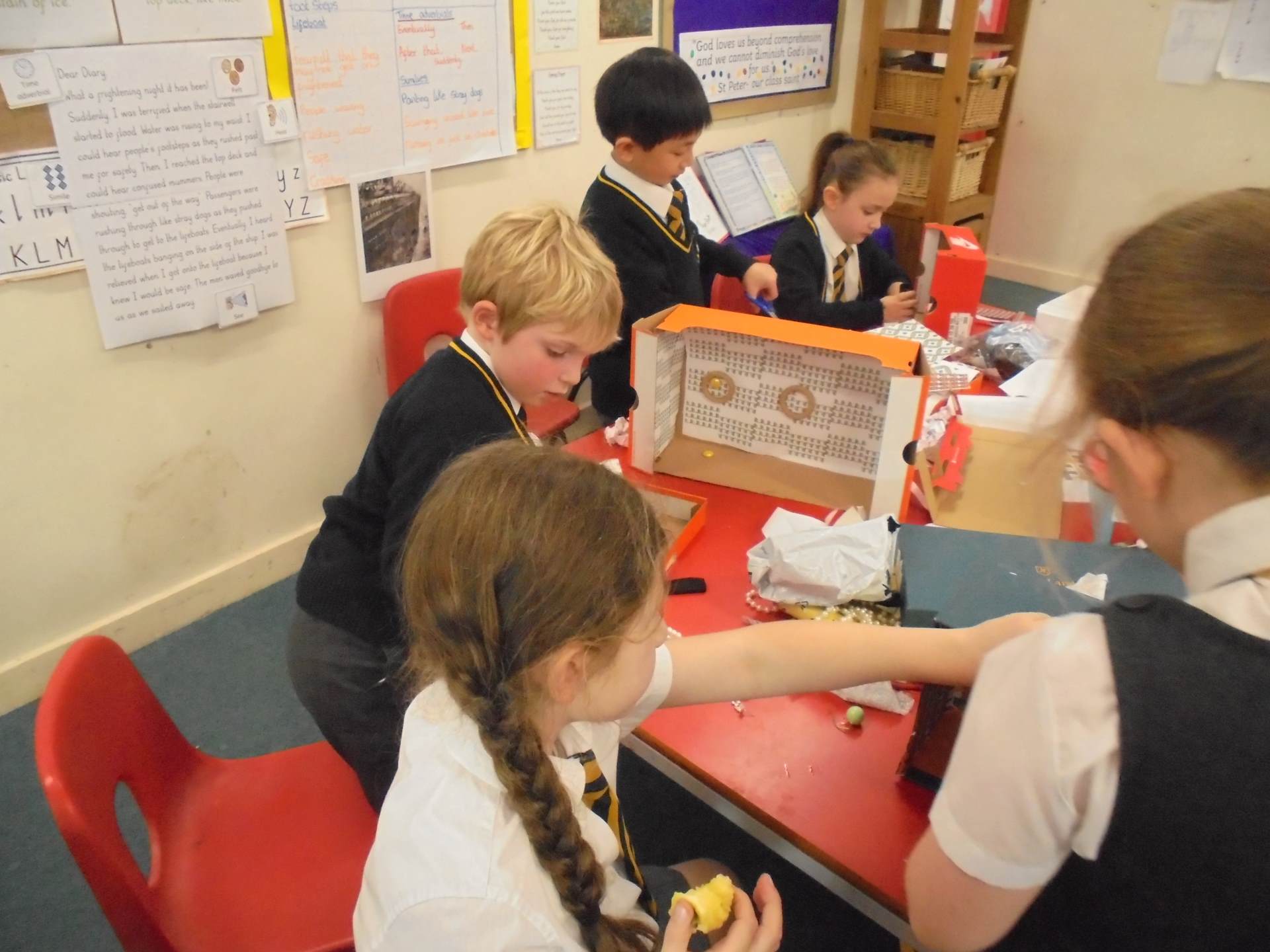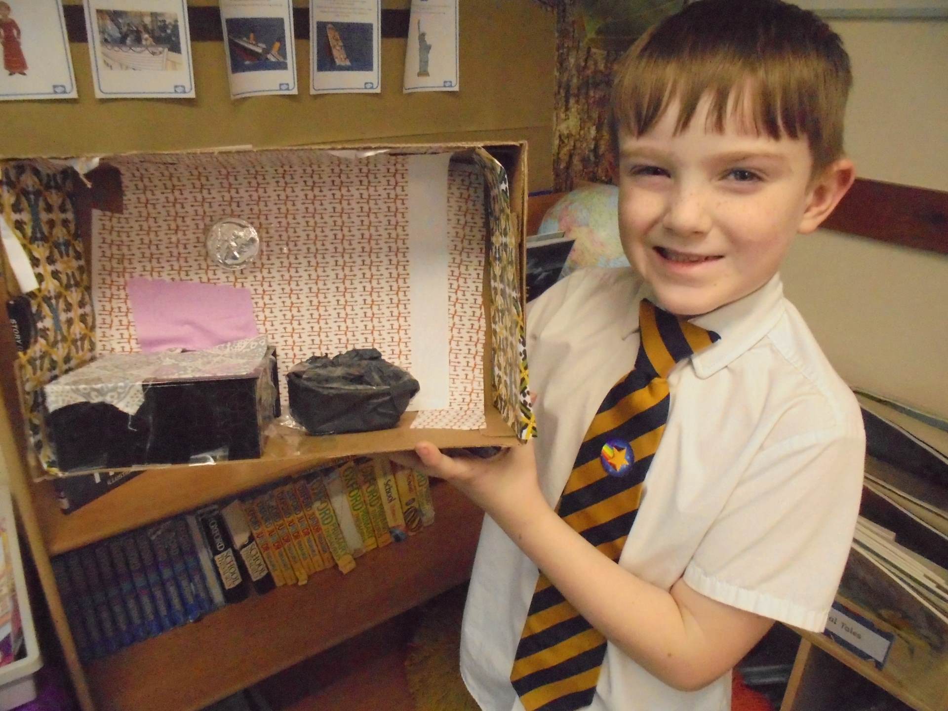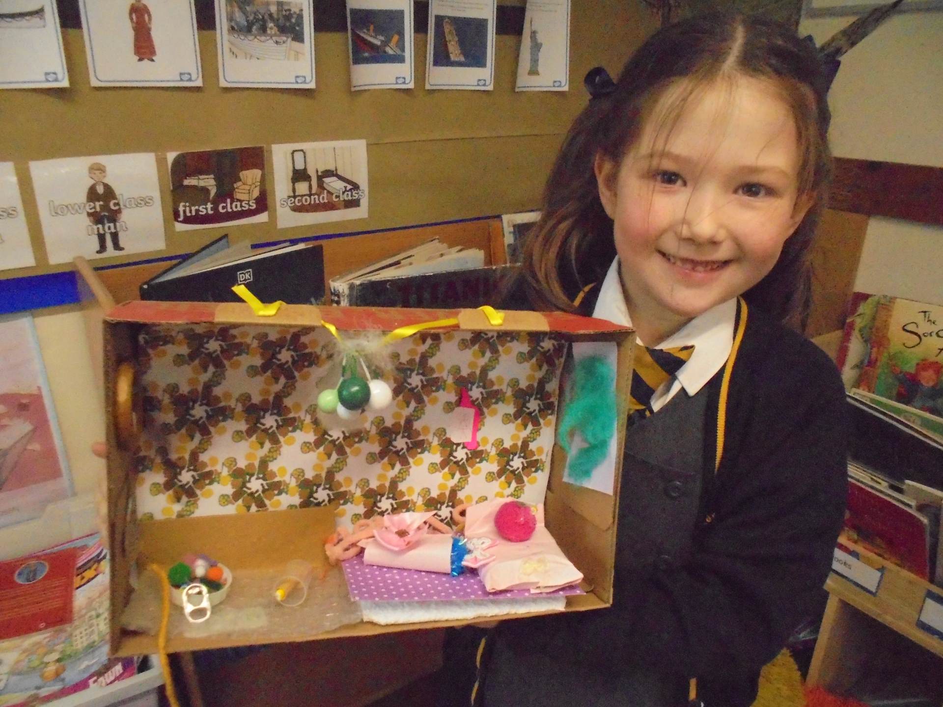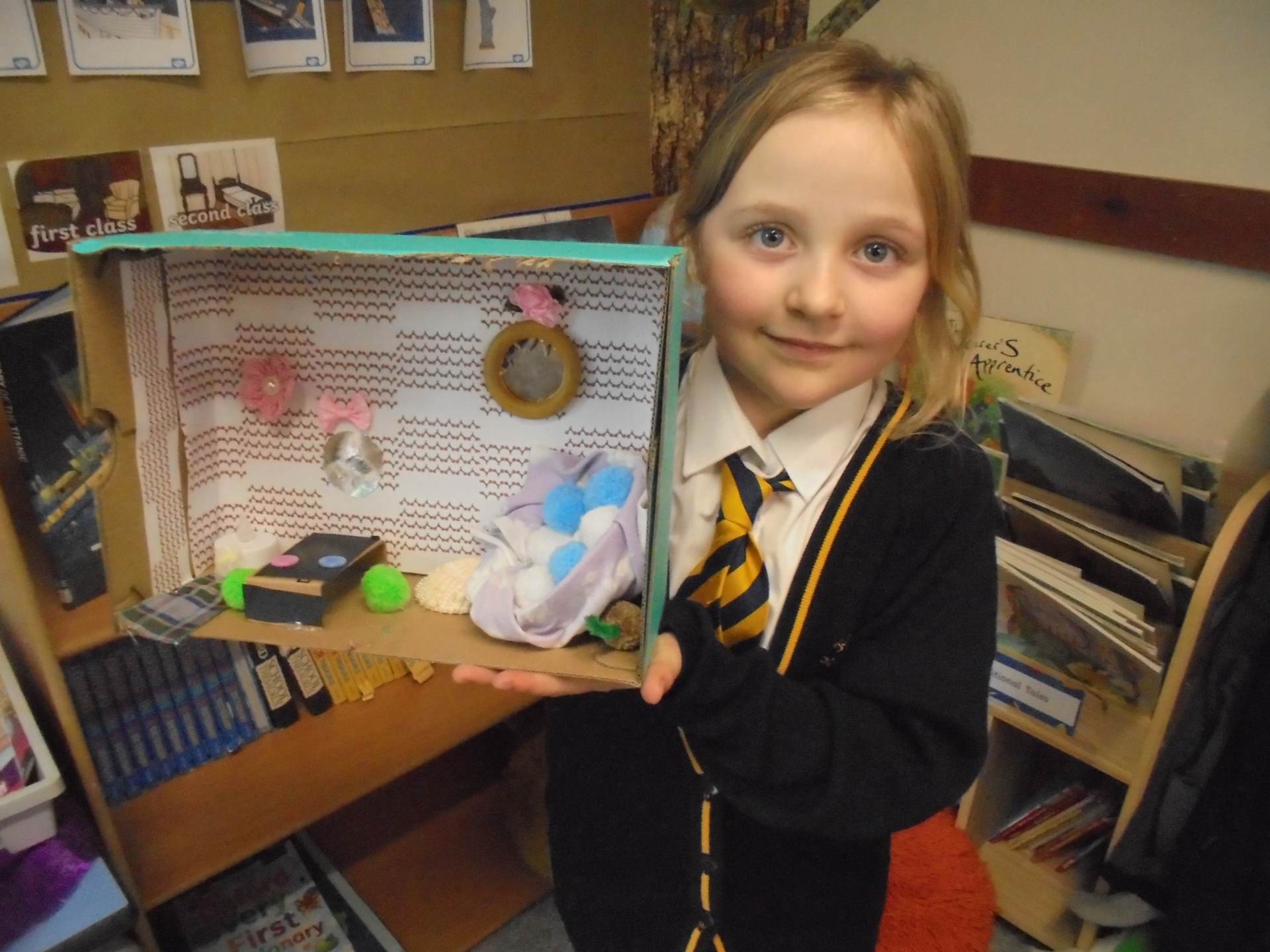 Year 2 learnt about the artist William Morris. The children explored the different pieces of art work he created and used his style to design wallpaper for their Titanic cabin. The children tried to include nature within their wall paper as well as symmetry and a repeating pattern.